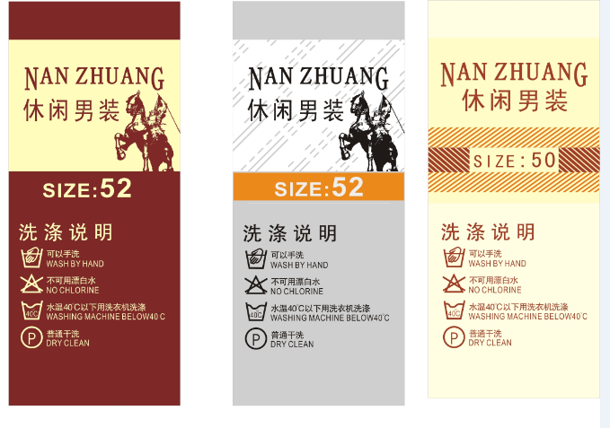 休闲男裤洗水标